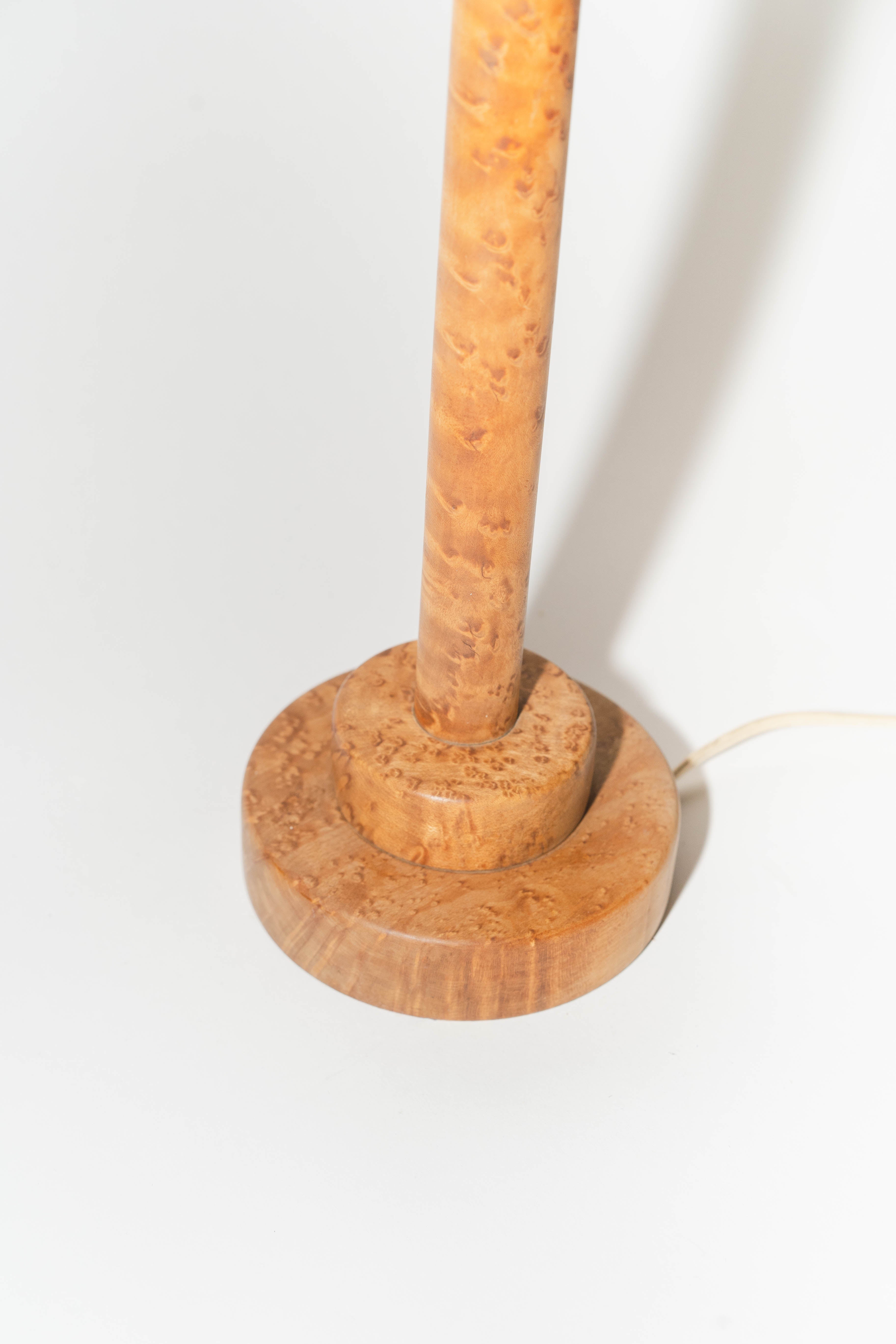 Table lamp crafted from bird’s eye maple. Push-through switch. Standard bulb. Wired for North America. Available for purchase with or without the shade (not vintage).