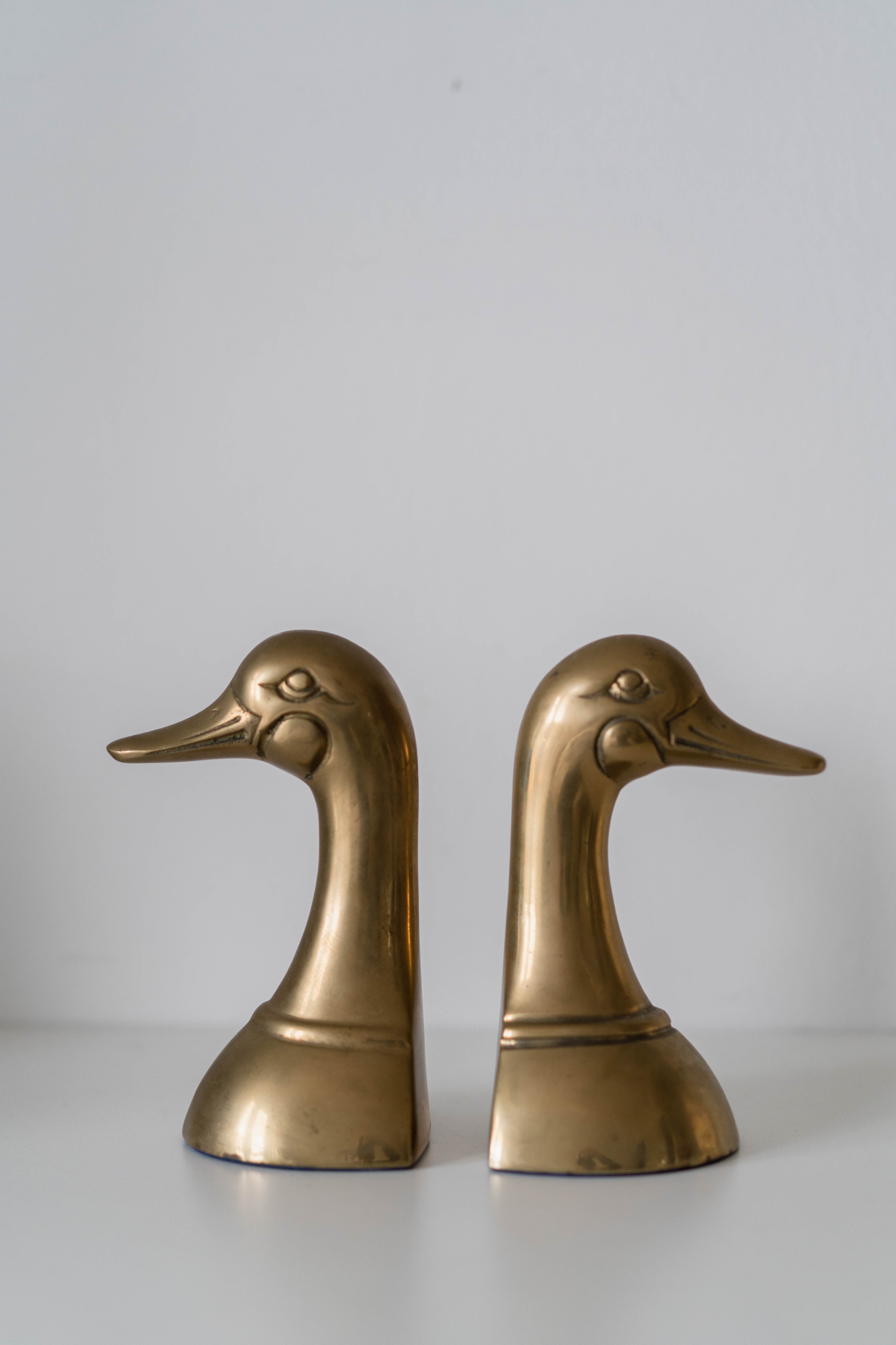 Heavy and solidly crafted duck head bookends. The set has developed a charming patina over time, adding to its vintage appeal.