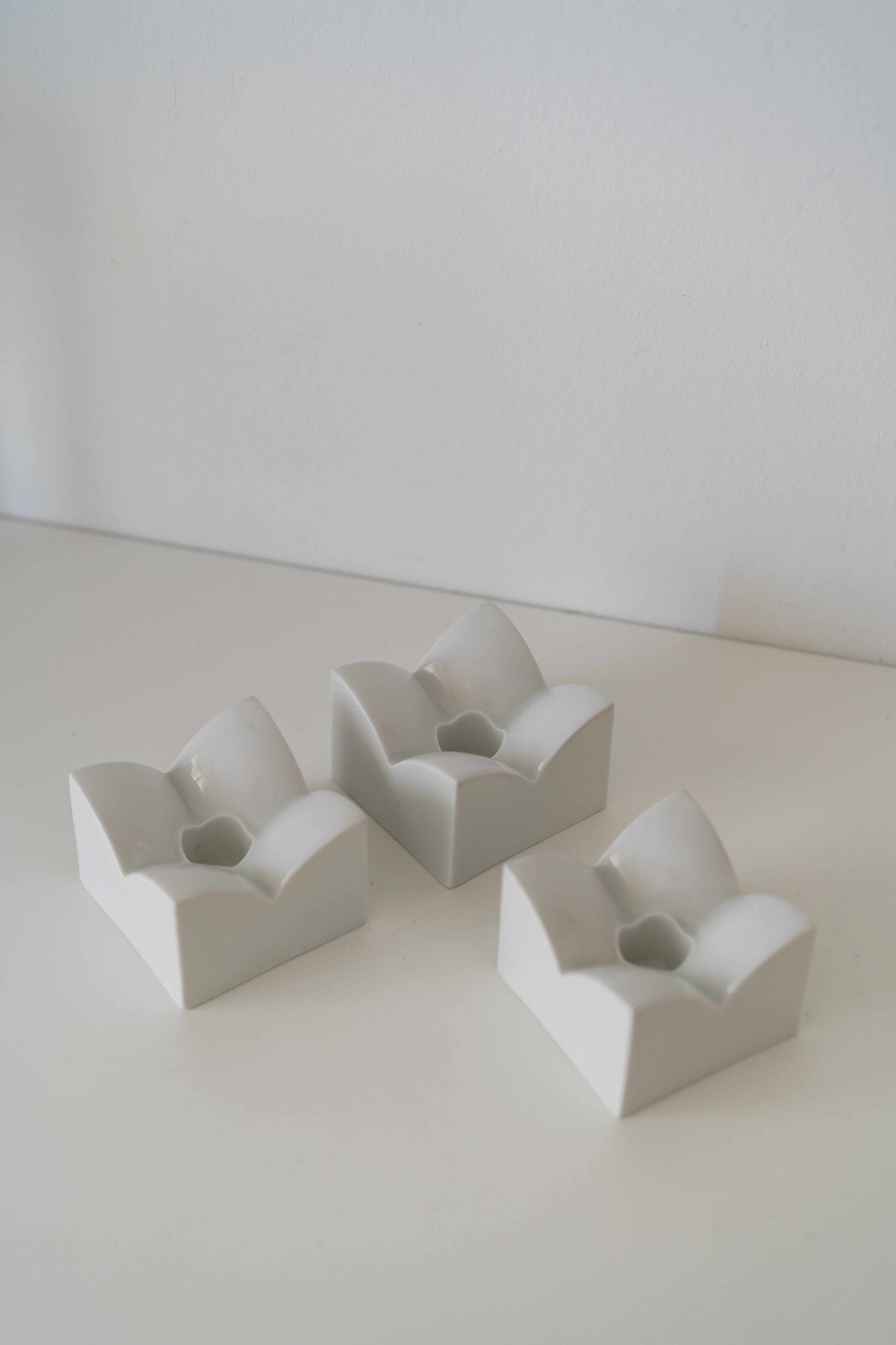 A trio of 1960s fine porcelain modernist candle holders made by Arzberg, Germany.