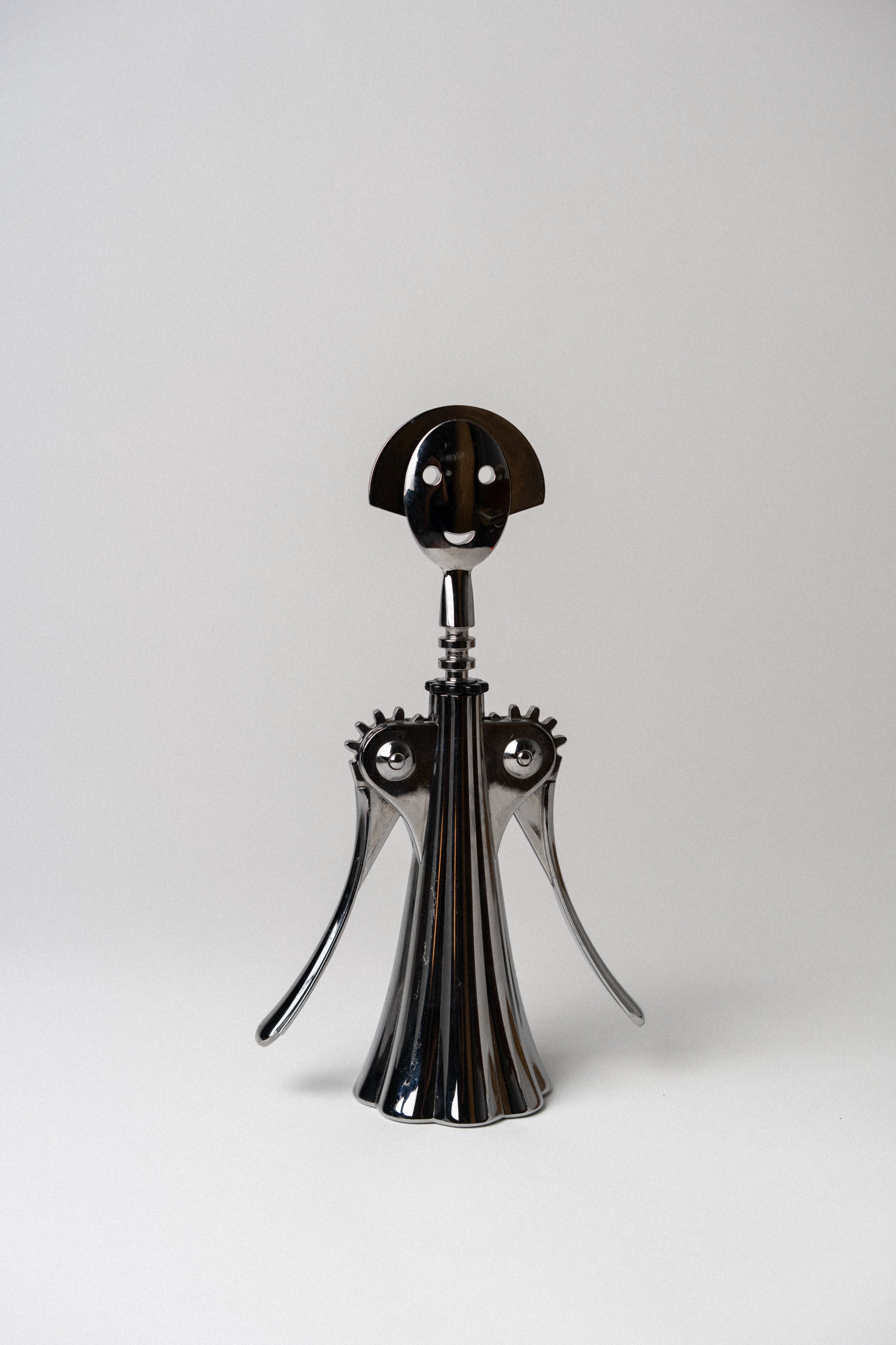 The Anna G. corkscrew, designed by Alessandro Mendini in 1994 for Alessi. Chrome plated.