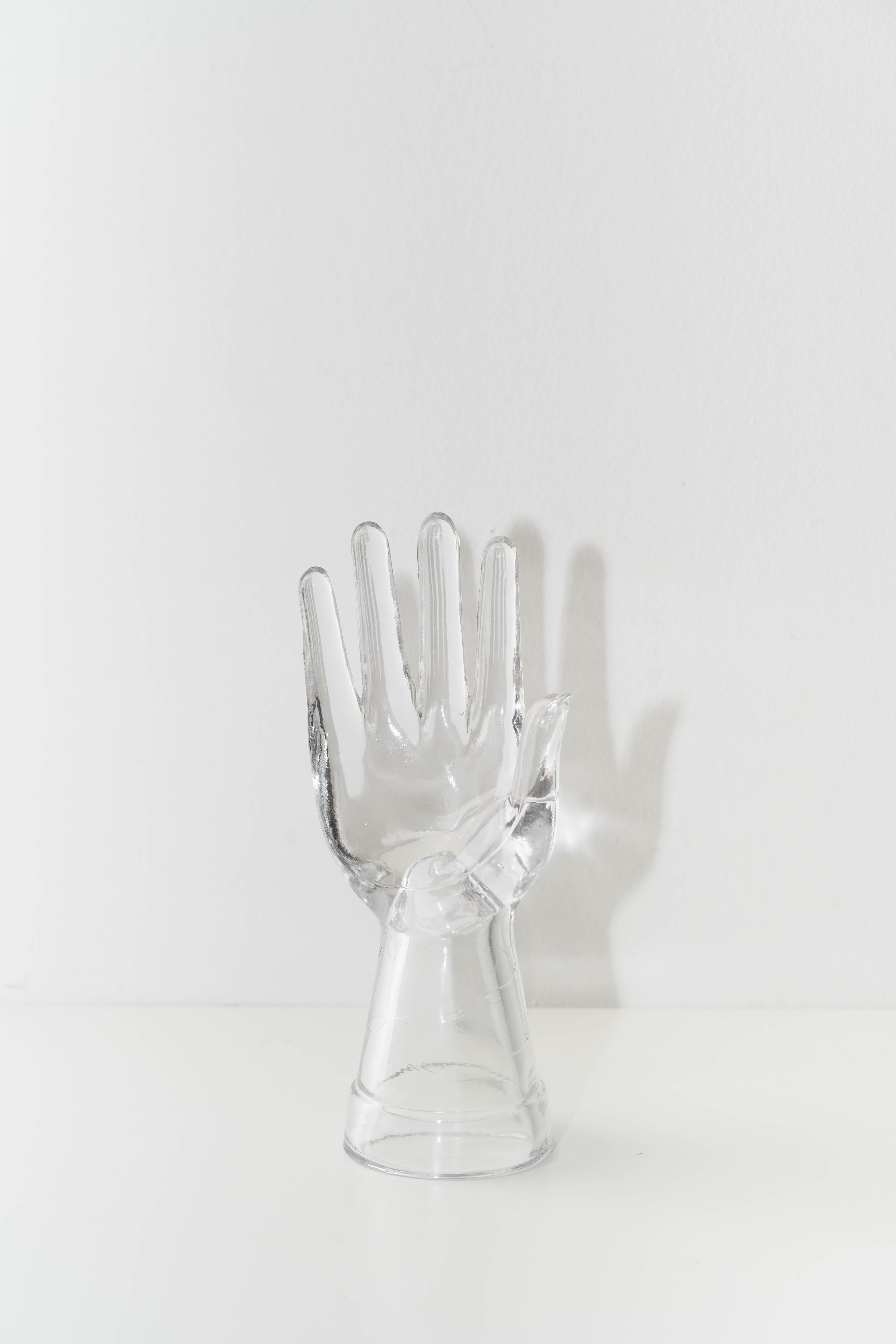 Vintage glass hand sculpture. Ideal for displaying jewelry, holding rings, or serving as a standalone sculptural accent.