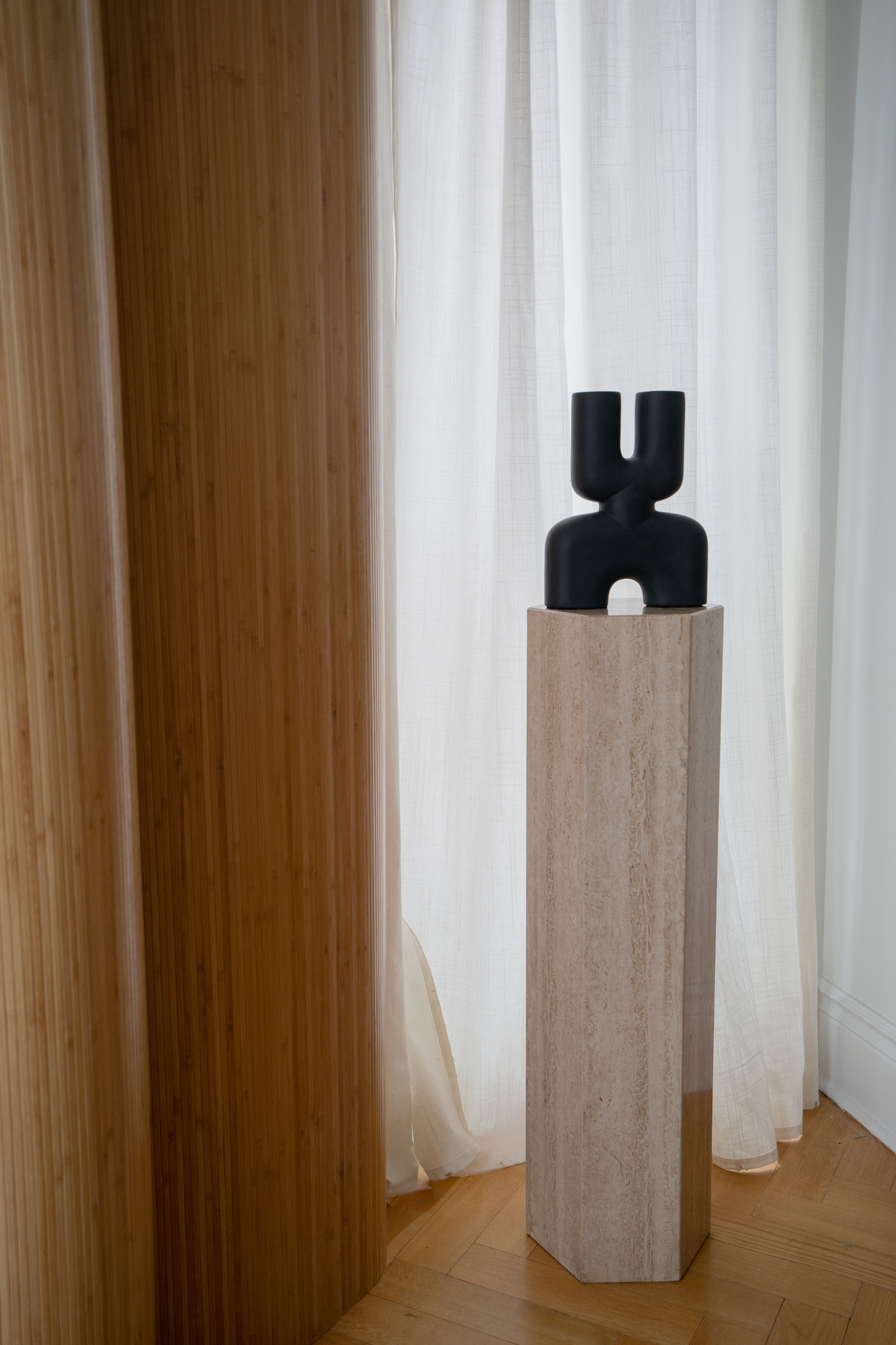 Hexagonal travertine plinth - perfect to display plants, floral arrangement, lamp, or a sculpture.