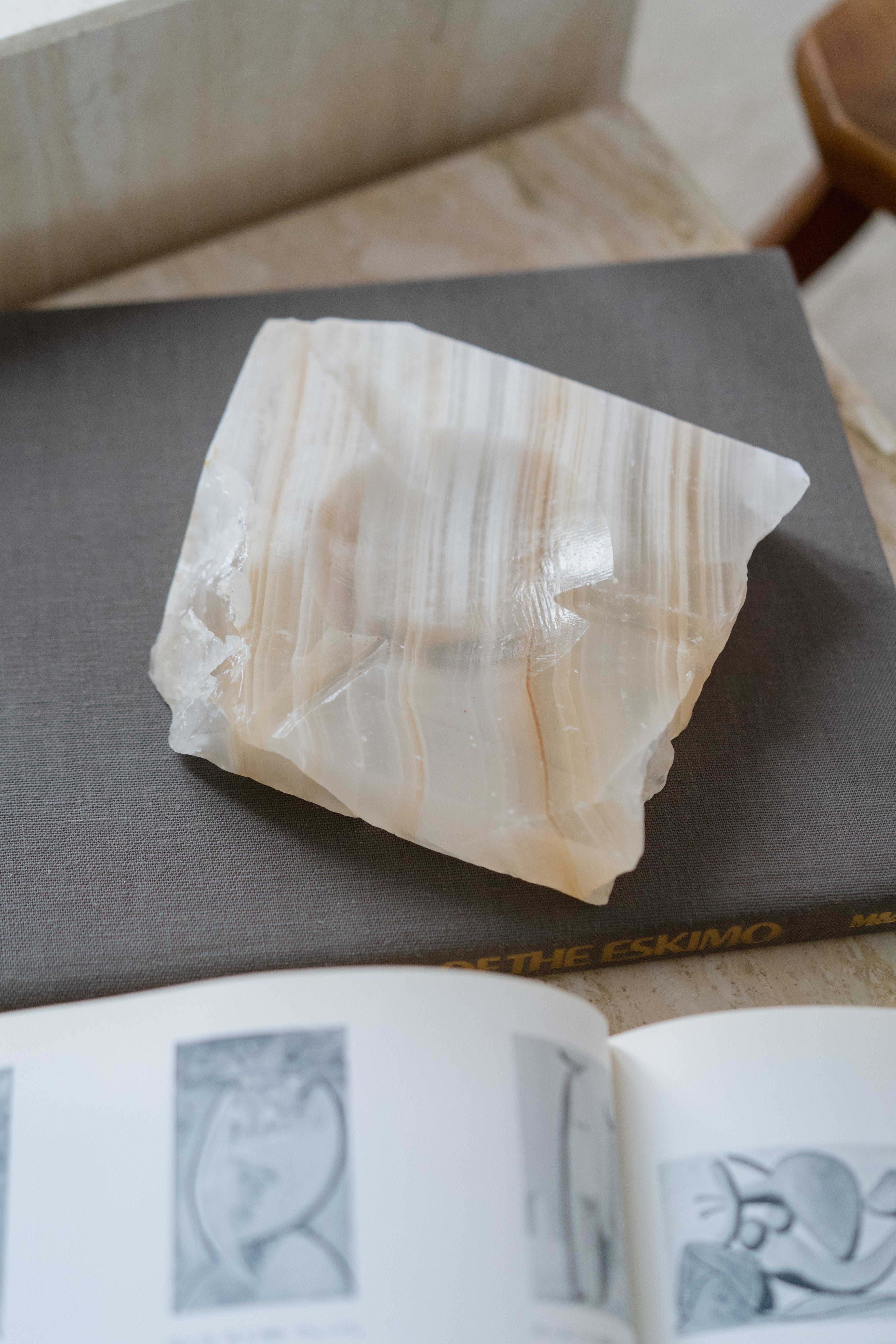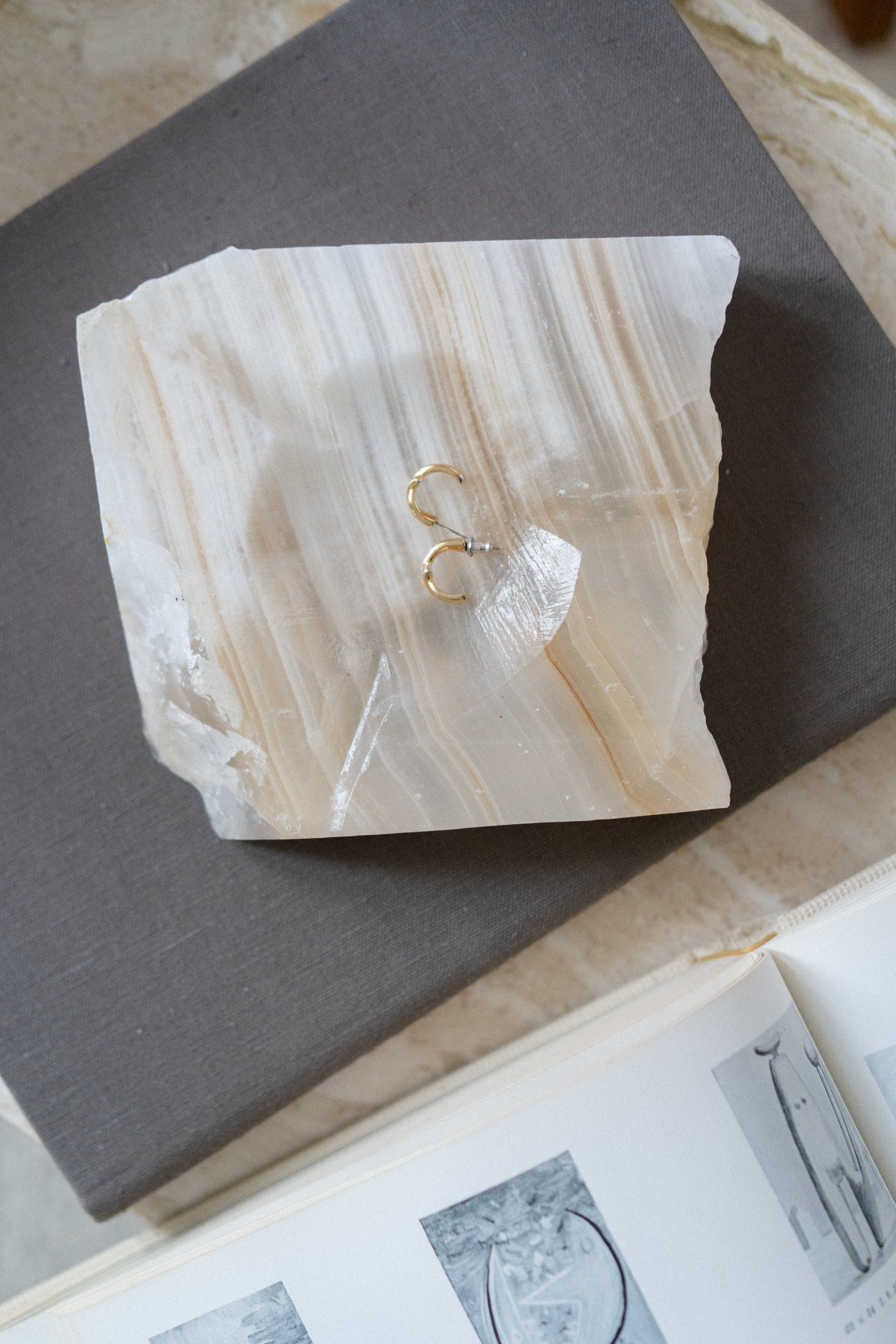 Freeform ashtray featuring raw edges, beige, taupe and cream veining. Beautiful as a display piece for your coffee table or shelf to hold jewelry, loose change, or to use as intended.