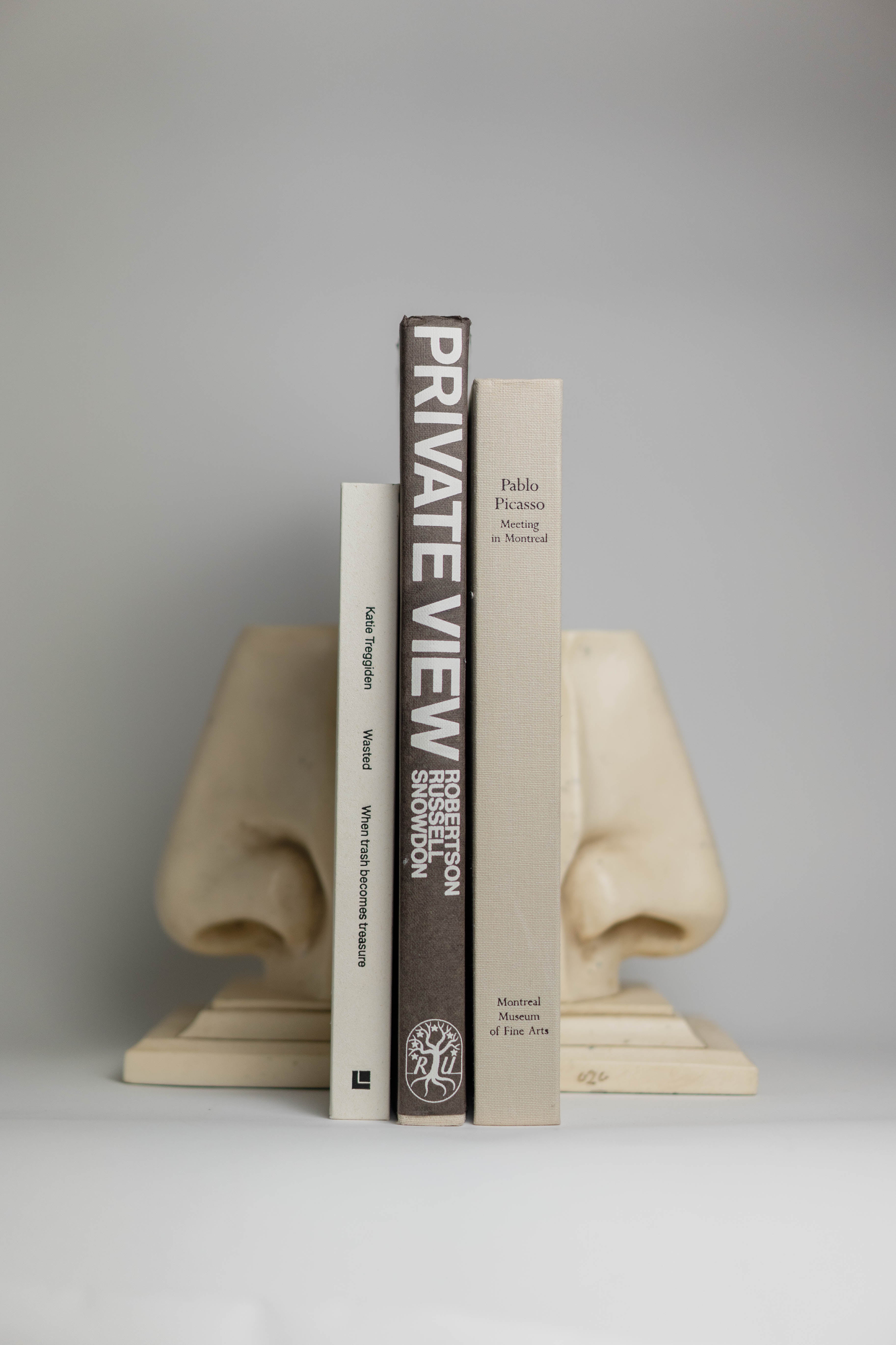Pair of vintage bookends by C2C Designs, c.1980s. Signed on the side. Made from a heavy resin composition that mimics marble.