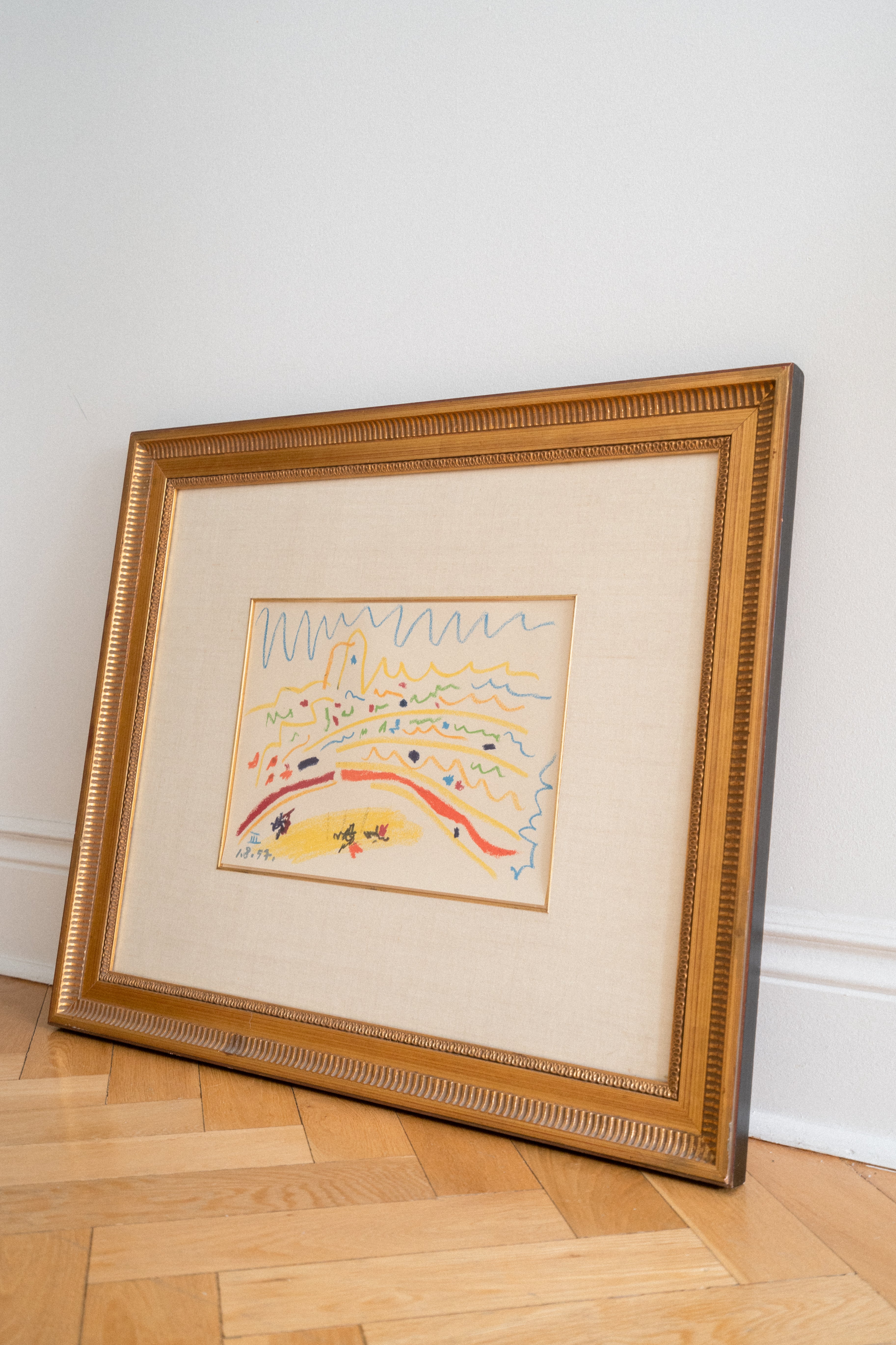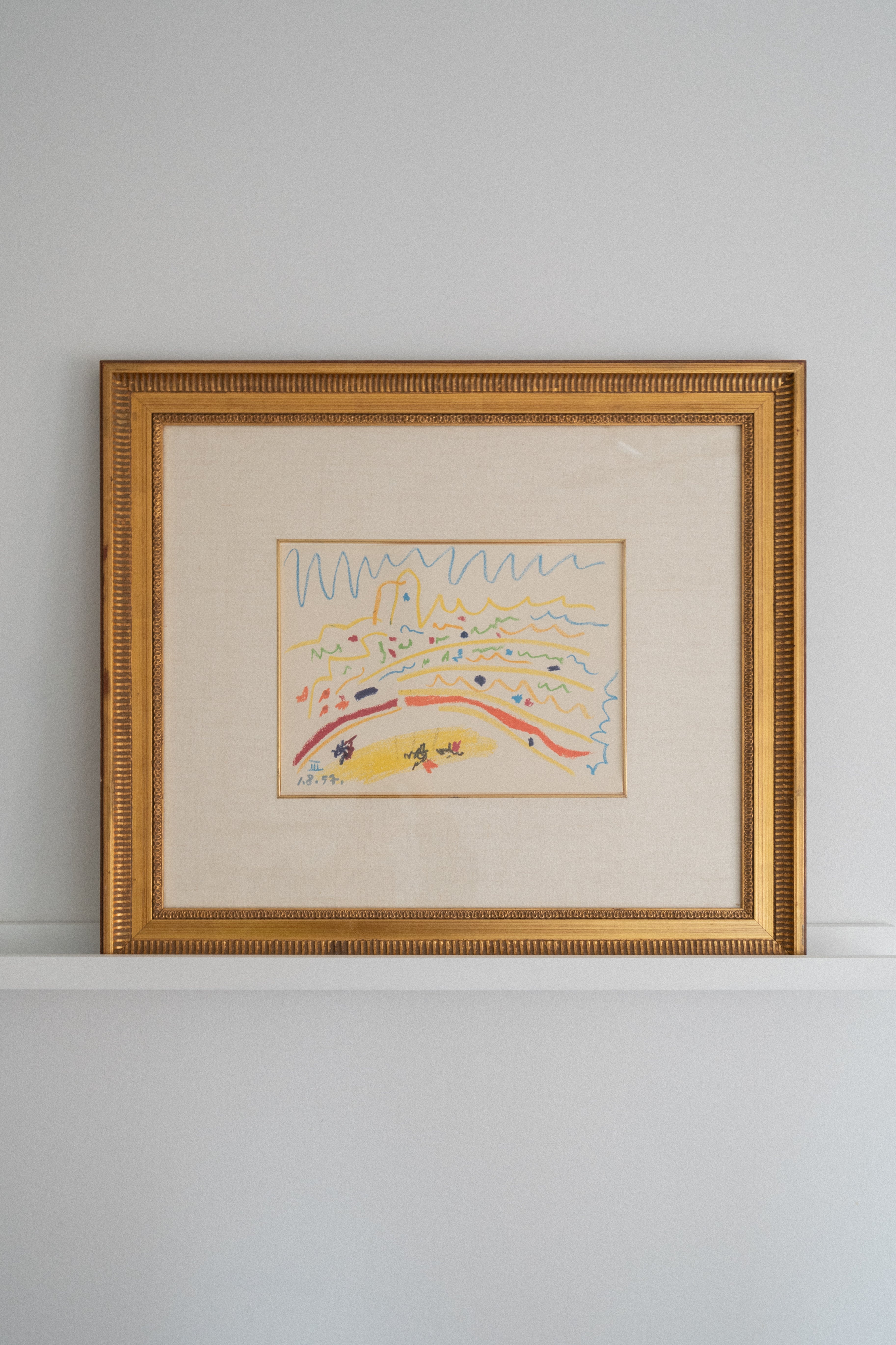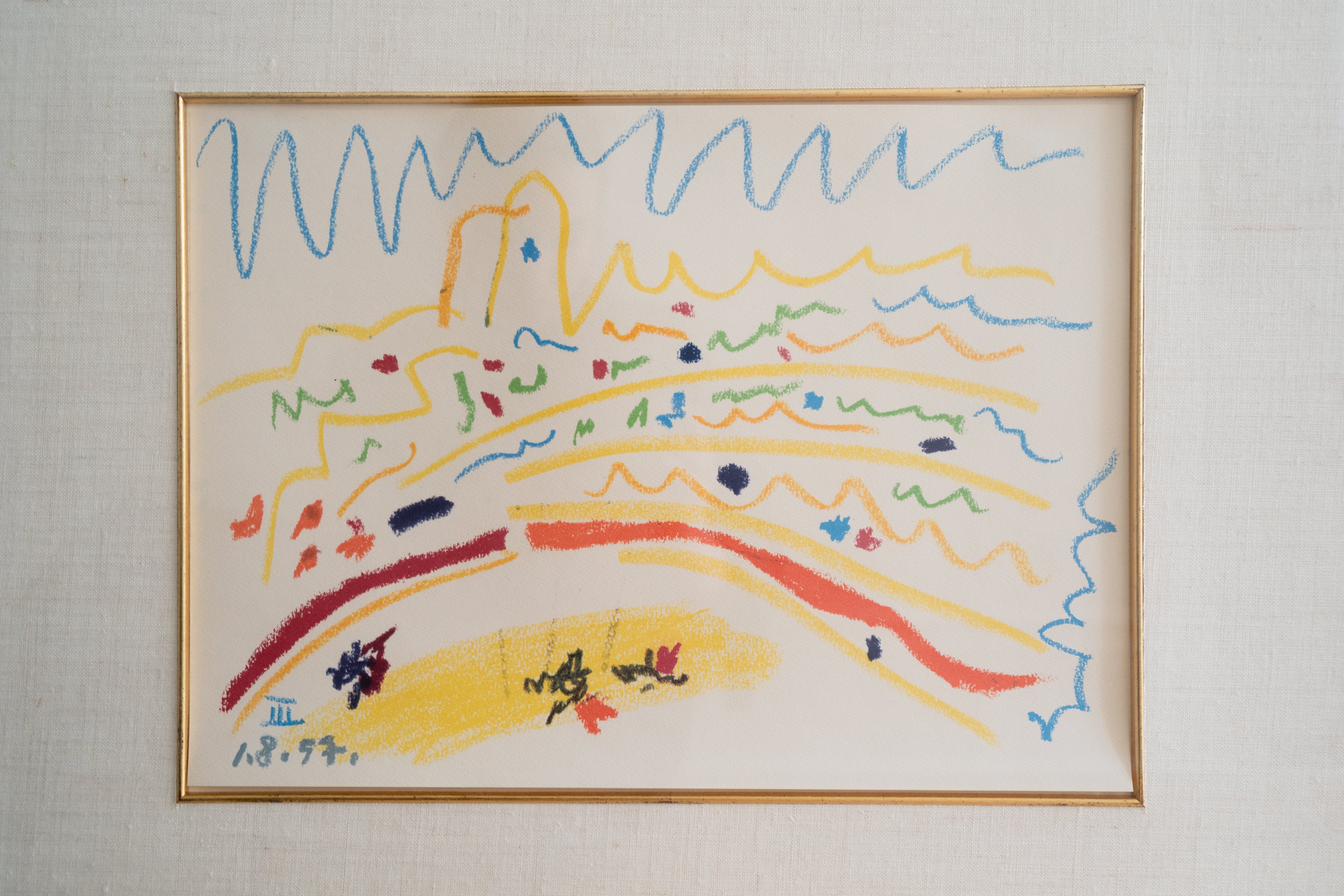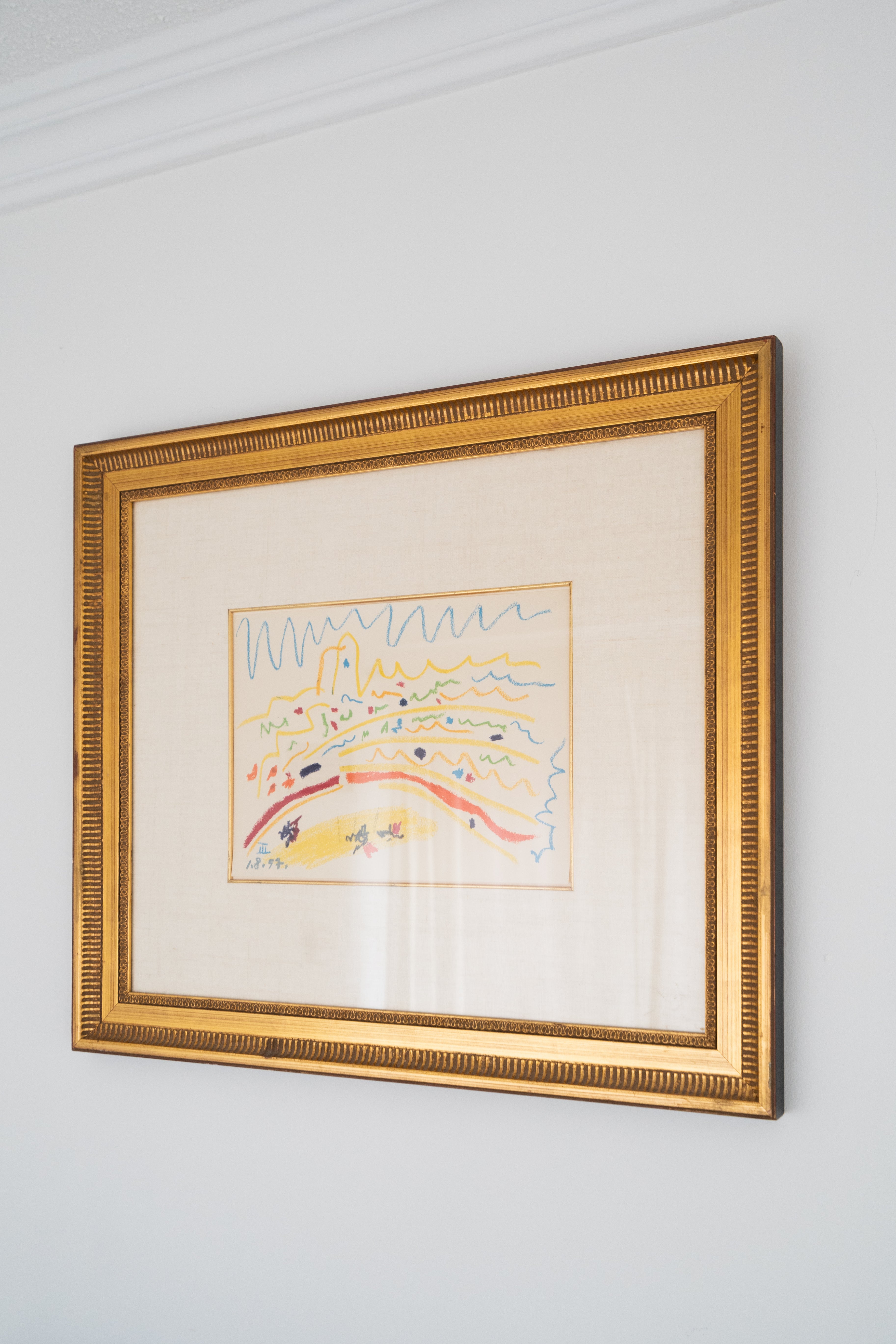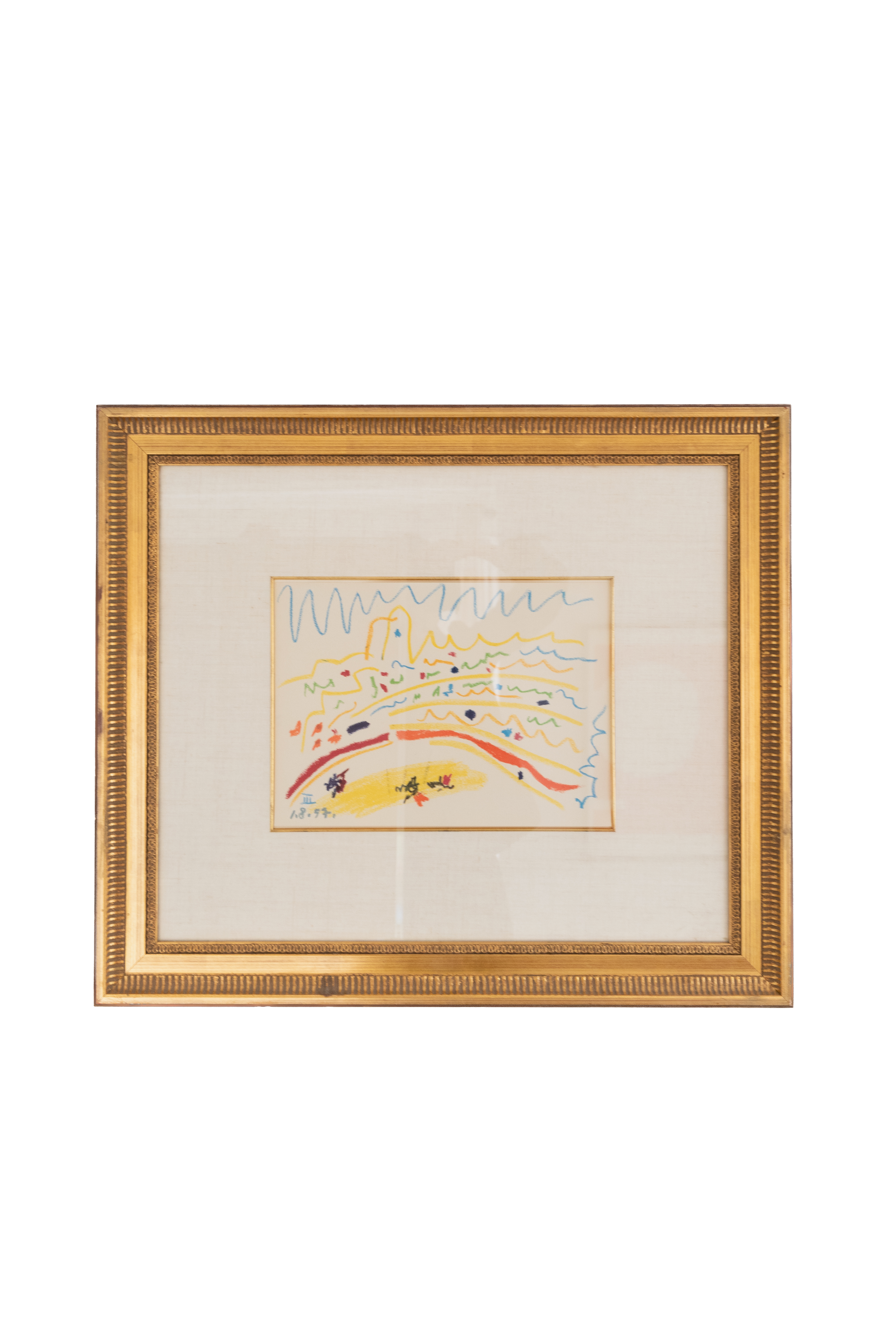 Lithograph of "Bullring III" by Pablo Picasso, unsigned and mounted in an antique gilt wooden frame.