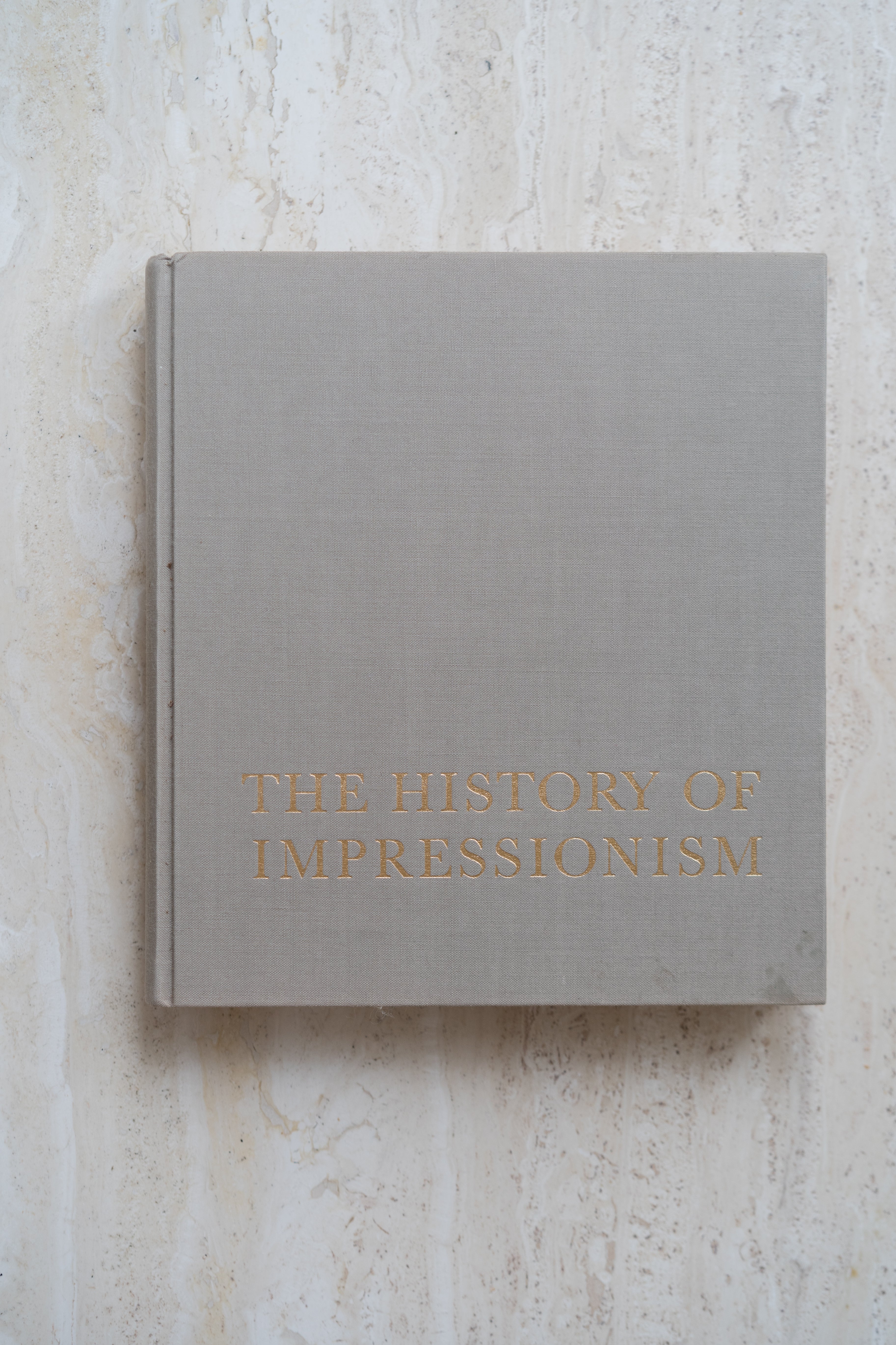 Vintage coffee table book on the history of Impressionist art. Features 480+ illustrations and a taupe clothbound cover with gold lettering. Published in 1973 by the Museum of Modern Art. Printed in Japan. 672 pages.