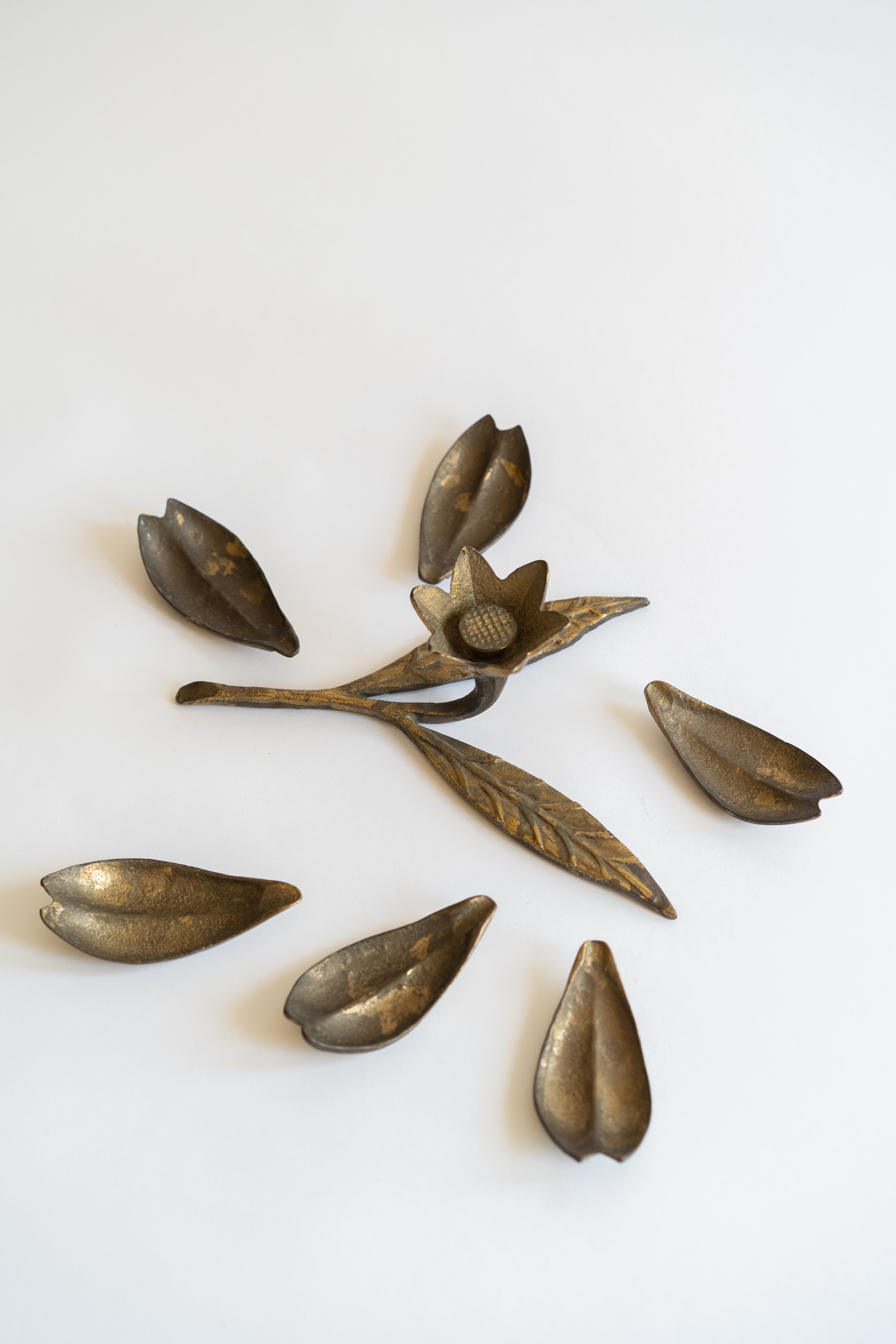Vintage french brass ashtray resembling a lotus flower. Each petal can be removed and used as an individual ash tray.